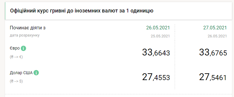 Национальный банк Украины на четверг, 27 мая, ослабил курс гривны на 9 копеек по отношению к доллару и на копейку к евро, передает FaceNews.ua. Об этом свидетельствуют данные на сайте НБУ.