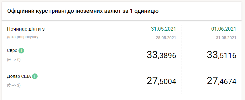Национальный банк Украины на вторник, 1 июня, укрепил курс гривны на 3 копейки по отношению к доллару, но понизил более чем на 12 копеек к евро, передает FaceNews.ua. Об этом свидетельствуют данные на сайте НБУ в понедельник, 31 мая.