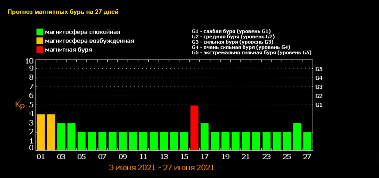 Однако уже 17 июня украинцы почувствуют на себе настоящую магнитную бурю. По предварительным прогнозам, ей присвоен уровень G1 – слабая буря.