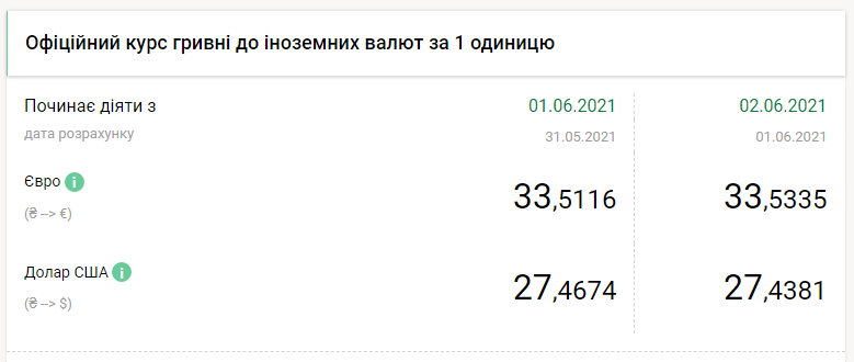 Национальный банк Украины на среду, 2 июня, укрепил курс гривны почти на 3 копейки по отношению к доллару, но понизил более чем на 2 копейки к евро, передает FaceNews.ua. Об этом свидетельствуют данные на сайте НБУ.