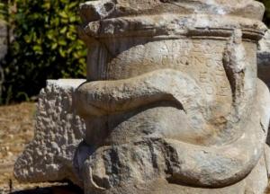 Как пишет Greek Reporter, на древнегреческом алтаре изображена змея, которая обвивает камень.