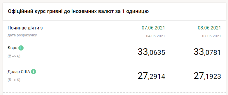 Национальный банк Украины на вторник, 8 июня, укрепил курс гривны на 9 копеек по отношению к доллару и ослабил на копейку к евро, передает FaceNews.ua. Об этом свидетельствуют данные на сайте НБУ.