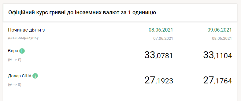 Национальный банк Украины на среду, 9 июня, укрепил курс гривны на 1 копейку по отношению к доллару и ослабил на три копейки к евро, передает FaceNews.ua. Об этом свидетельствуют данные на сайте НБУ.