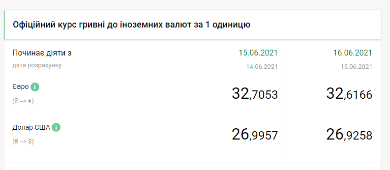 Национальный банк Украины на среду, 16 июня, укрепил курс гривны почти на 7 копеек по отношению к доллару и почти на 9 копеек к евро, передает FaceNews.ua. Об этом свидетельствуют данные на сайте НБУ.