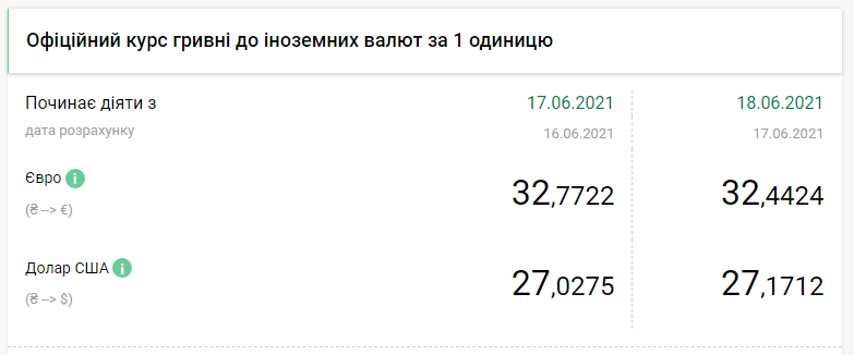 Национальный банк Украины на пятницу, 18 июня, понизил курс гривны более чем на 14 копеек по отношению к доллару, но укрепил на 32 копейки к евро, передает FaceNews.ua. Об этом свидетельствуют данные на сайте НБУ.