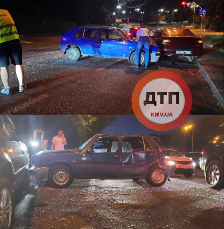 Как сообщает dtp.kiev.ua, авария случилась на улице Лаврская. У водителя грузовика МАЗ отказали тормоза во время набора скорости. Он протаранил два автомобиля, которые стояли на светофоре.