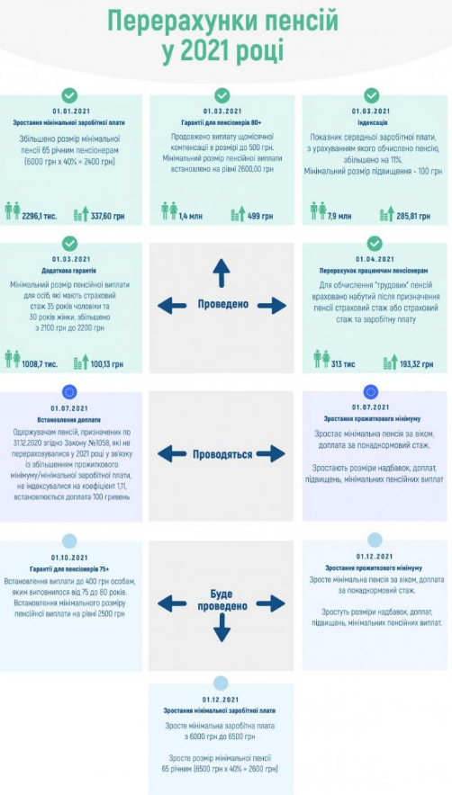 С 1 октября 2021 года устанавливаются выплаты для пенсионеров 75+ до 400 гривен. А минимальная пенсия с этой даты будет на уровне 2 500 гривен.