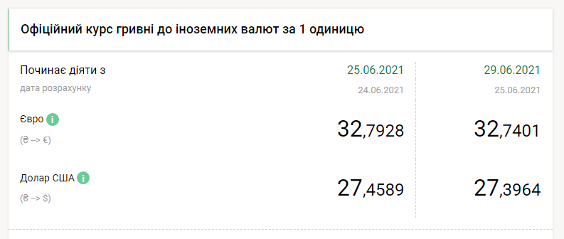 Национальный банк Украины на вторник, 29 июня, укрепил курс гривны более чем на 6 копеек по отношению к доллару и на 5 копеек к евро, передает FaceNews.ua. Об этом свидетельствуют данные на сайте НБУ.