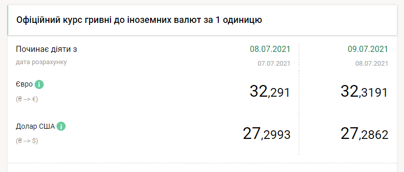 Национальный банк Украины на пятницу, 9 июля, укрепил гривну на одну копейку по отношению к доллару и ослабил на 2 копейки к евро, передает FaceNews.ua. Об этом свидетельствуют данные на сайте НБУ.
