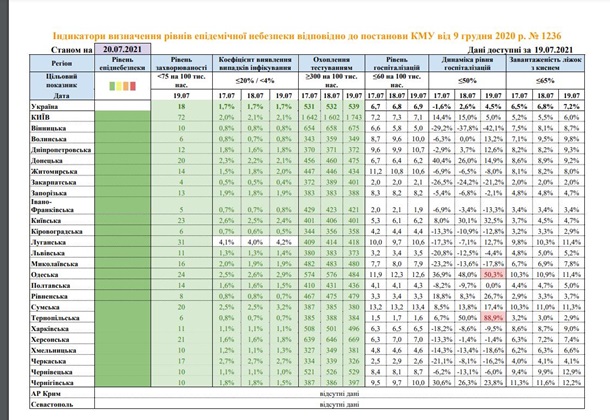 Одесская и Тернопольская области не соответствуют зеленой зоне эпидемической опасности по показателю динамики госпитализаций. Об этом сообщает пресс-служба Минздрава во вторник, 20 июля.