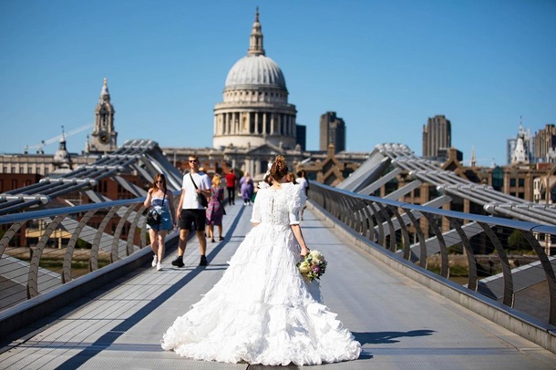 "Мы очень рады, что с сегодняшнего дня свадьбы в Великобритании вернутся без юридических ограничений. С учетом того, что этим летом состоятся тысячи свадеб, пары теперь могут с нетерпением ждать открытия танцполов, фуршетов с напитками и фотографий, полных улыбающихся лиц после снятия ограничений", - подчеркнула редактор журнала Hitched Сара Аллард.