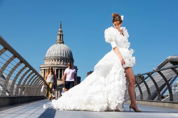 В Великобритании создали свадебное платье из защитных масок (фото)