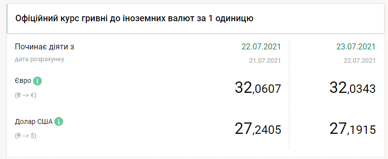 Национальный банк Украины на пятницу, 23 июля, на четыре копейки ослабил курс гривны по отношению к доллару и на две копейки по отношению к евро, передает FaceNews.ua. Об этом свидетельствуют данные на сайте НБУ.