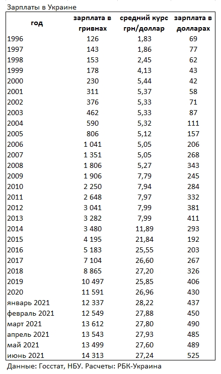Как сообщает Государственная служба статистики, средний курс в июне составлял 27,24 гривен за доллар. Средняя зарплата составила 525 долларов.