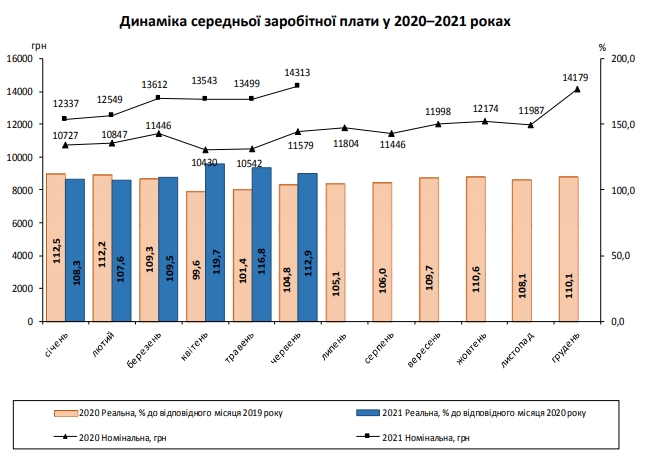 Средняя номинальная заработная плата штатного работника предприятий, учреждений и организаций Украины в июне 2021 года составила 14 313 гривен. Это на 814 гривен больше по сравнению с маем (13 499 гривен). Средняя зарплата украинцев впервые в истории превысила 500 долларов,передает FaceNews.ua.