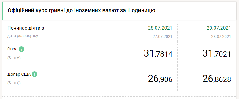 Курсы валют на 29 июля: гривна установила новый годовой максимум