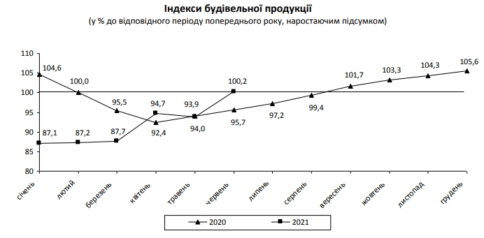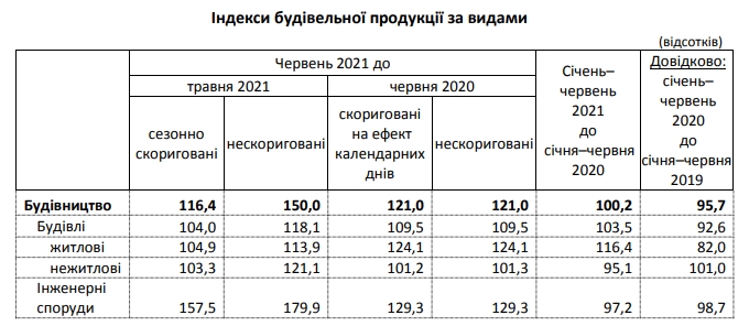Объемы строительства в Украине в июне 2021 года по сравнению с аналогичным периодом прошлого года выросли на 21%. При этом строительство жилья выросло на 24,1%.