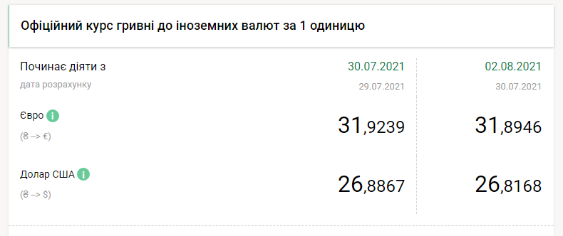 Таким образом, официальный курс доллара упал до минимума более чем за год. Ниже курс был только 2 июля 2020 года – 26,77 гривен за доллар. В свою очередь евро понизился после роста накануне.