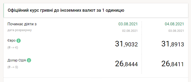 Курсы валют на 4 августа: НБУ минимально укрепил гривну