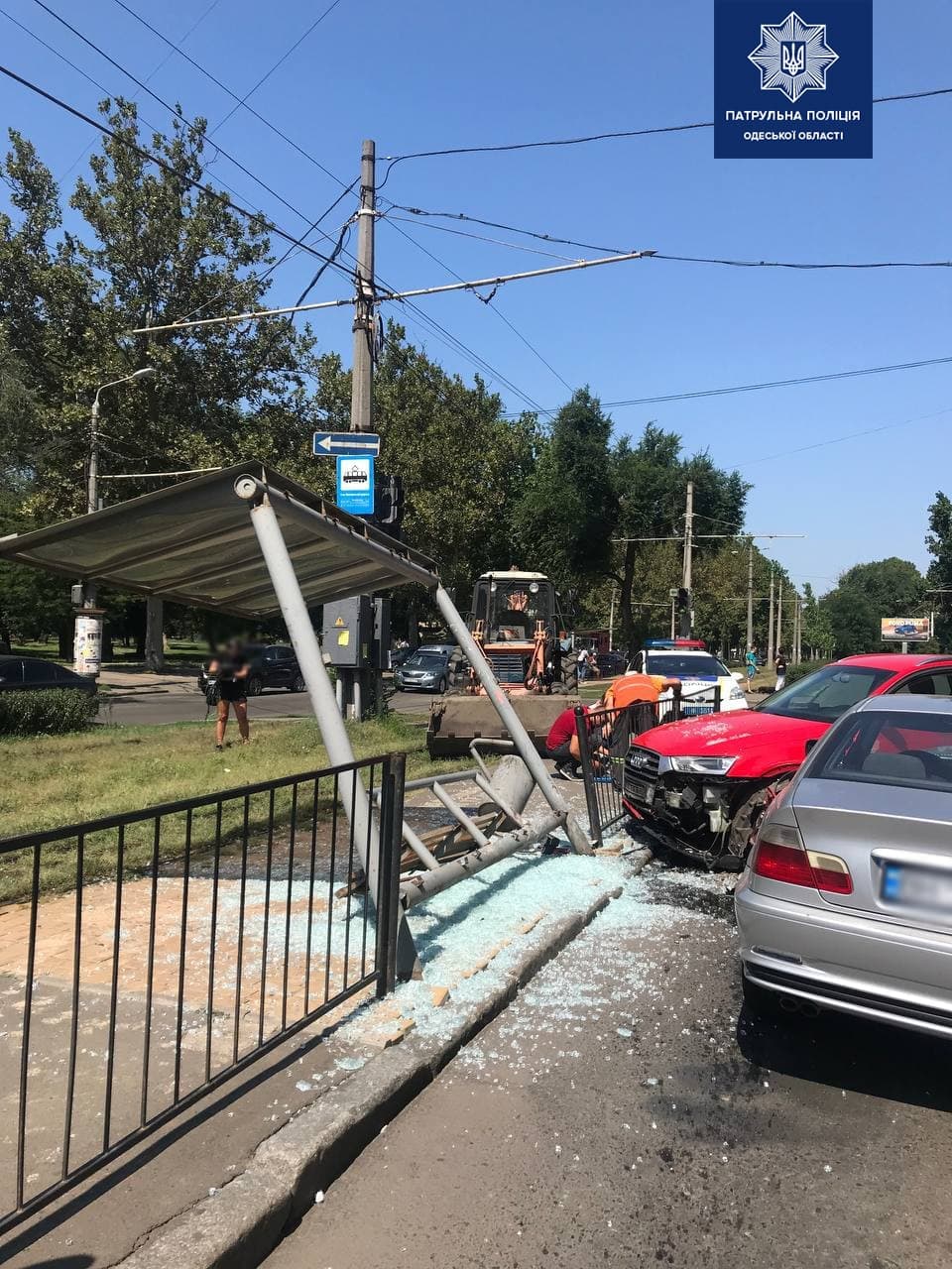 Во вторник, 10 августа, на 4-й станции Большого Фонтана, на улице Фонтанская дорога в Одессе водитель BMW, не справившись с управлением, протаранил сразу три автомобиля. В результате столкновения одна машина влетела в остановку, передает FaceNews.ua. Трое человек, ожидавшие трамвая, пострадали. Об этом сообщили в патрульной полиции Одесской области.