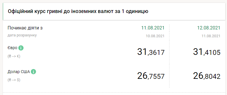 Национальный банк Украины на четверг, 12 августа, понизил курс гривны почти на 5 копеек по отношению к доллару и на 5 копеек к евро, передает FaceNews.ua. Об этом свидетельствуют данные на сайте НБУ.