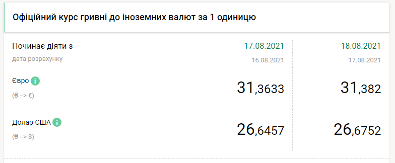 Национальный банк Украины на среду, 18 августа, ослабил курс гривны на 2 копейки по отношению к доллару и евро, передает FaceNews.ua. Об этом свидетельствуют данные на сайте НБУ.