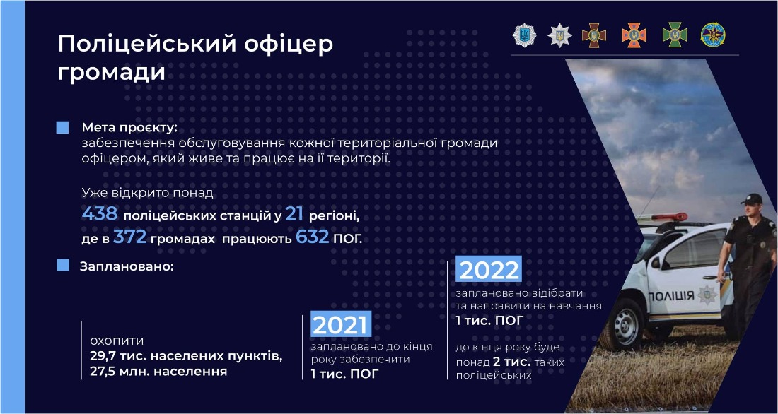 По его словам, сейчас одним из важнейших и перспективных проектов МВД является проект Полицейский офицер общины. Цель проекта - обеспечение обслуживания каждой территориальной общины офицером, который живет и работает на ее территории.