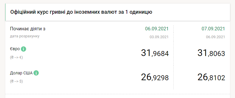 Национальный банк Украины на вторник, 7 сентября, укрепил курс гривны почти на 12 копеек по отношению к доллару и на 16 копеек к евро, передает FaceNews.ua. Об этом свидетельствуют данные на сайте НБУ.