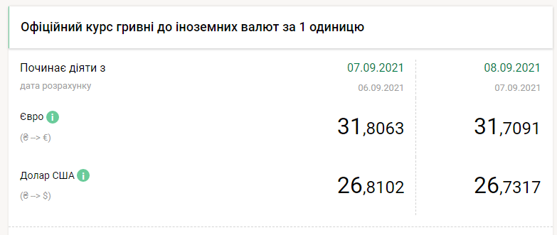 Национальный банк Украины на среду, 8 сентября, укрепил курс гривны почти на 8 копеек по отношению к доллару и почти на 10 копеек к евро, передает FaceNews.ua. Об этом свидетельствуют данные на сайте НБУ.