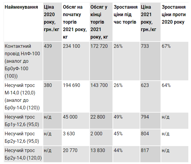 На тендерному аукціоні ціни кабелів та тросів знизились усього на 0,7% нижче від очікуваної вартості у 248,82 млн грн.