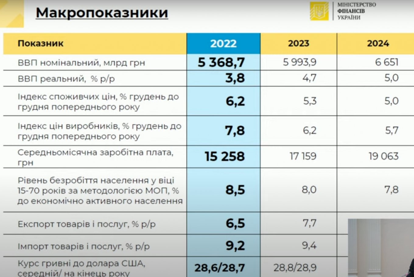 Ожидается, что номинальный ВВП Украины составит 5368,7 млрд гривен, среднемесячная зарплата 15 258 гривен, уровень безработицы - 8,5%.
