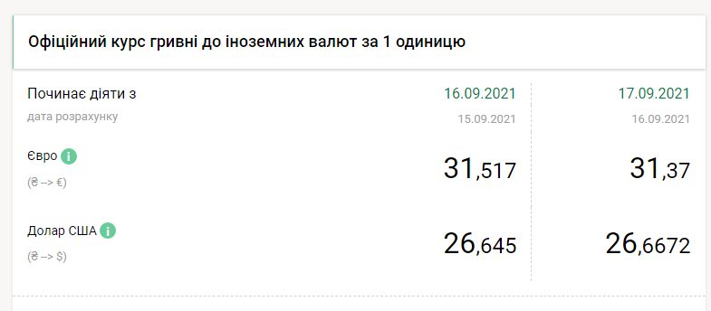 Национальный банк Украины на пятницу, 17 сентября, на копейку ослабил курс гривны по отношению к евро и на две копейки опустил по отношению к доллару, передает FaceNews.ua. Об этом свидетельствуют данные на сайте НБУ.