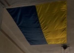 В Николаеве дырку в потолке райадминистрации закрыли флагом Украины (фото)