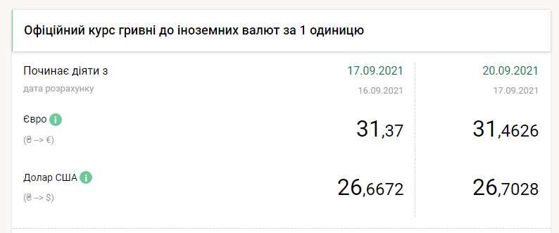 Национальный банк Украины на понедельник, 20 сентября, на три копейки ослабил курс гривны по отношению к доллару, и на девять копеек опустил по отношению к евро, передает FaceNews.ua. Об этом свидетельствуют данные на сайте НБУ.