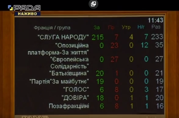 Верховная Рада на заседании в четверг, 7 октября, 284 голосами поддержала инициативу фракции Слуга народа об отзыве с должности спикера парламента Дмитрия Разумкова, передает FaceNews.ua.