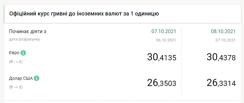 Национальный банк Украины на пятницу, 8 октября, укрепил курс гривны почти на 2 копейки по отношению к доллару, но понизил почти на 2,5 копейки к евро, передает FaceNews.ua. Об этом свидетельствуют данные на сайте НБУ в четверг, 7 октября.
