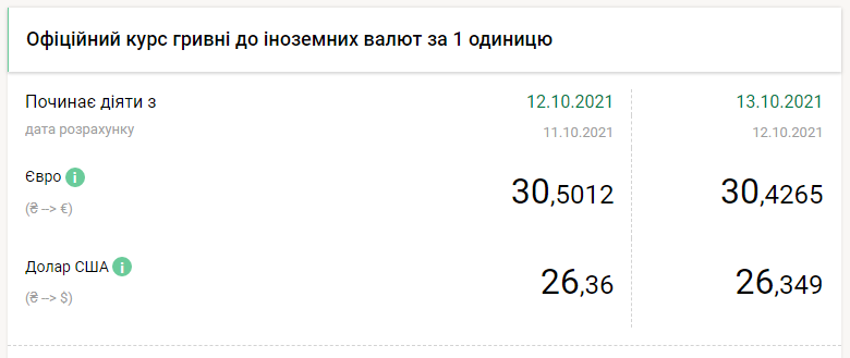 Национальный банк Украины на среду, 13 октября, укрепил курс гривны более чем на 1 копейку по отношению к доллару и на 7 копеек к евро, передает FaceNews.ua. Об этом свидетельствуют данные на сайте НБУ.