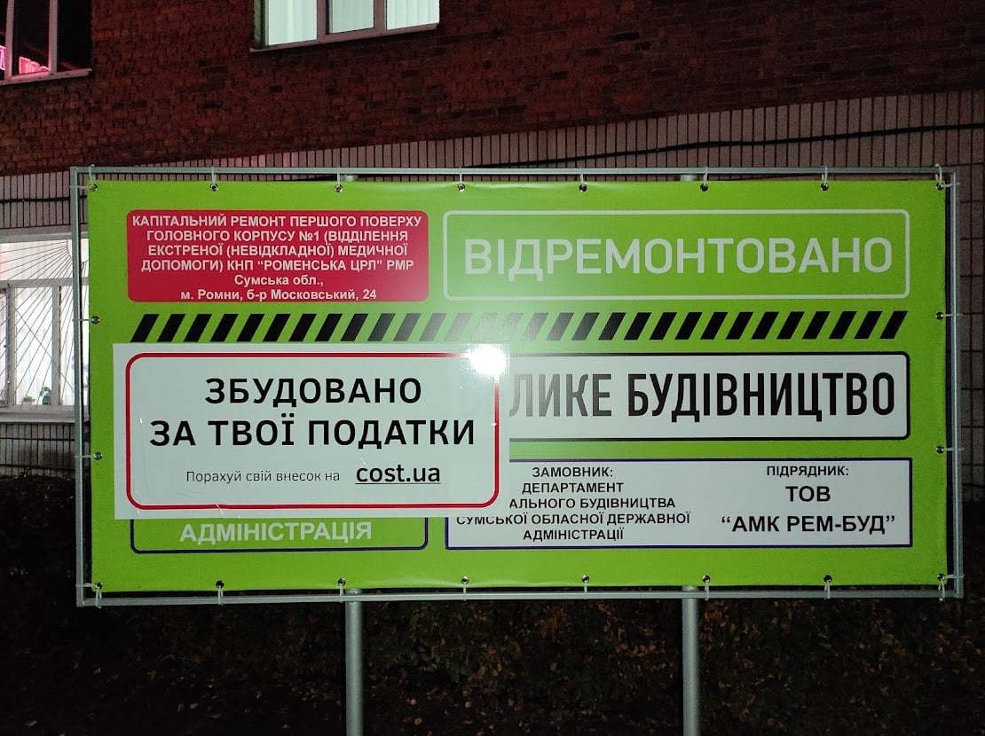 С целью отучить власть использовать манипуляции, на информационные доски, рекламные объявления, билборды, ситилайты и другие рекламные носители, где украинцам рассказывают, как «щедрый» депутат, мэр или президент что-то построили, размещаются вот такие наклейки. Дополнить информационные стенды уточнением, за чьи деньги на самом деле происходит т.н. «Большое строительство» и не только, может каждый желающий. Заказать наклейки бесплатно можно по ссылке (до 5 штук в одни руки, при условии фотоотчета). На странице "Ціни держави" в Facebook подписчики сбрасывают множество подобных фото.