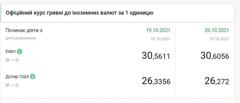 Национальный банк Украины на среду, 20 октября, на 6 копеек укрепил курс гривны к доллару, но понизил на 4 копейки к евро, передает FaceNews.ua. Об этом свидетельствуют данные на сайте НБУ.