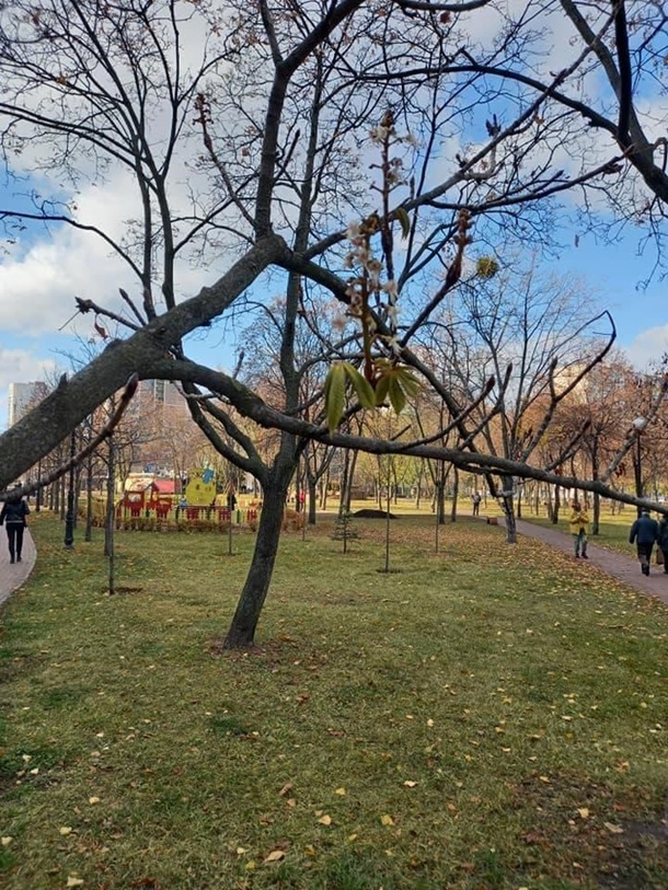 В Киеве в ноябре расцвели каштаны, цветущие деревья заметили на Оболони и Теремках, передает FaceNews.ua. Об этом сообщается в Telegram-канале Киев без цензуры.
