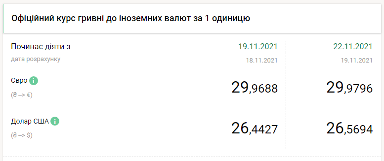 Таким образом, официальный курс доллара вырос до максимума за полтора месяца. Выше курс был только 5 октября – 26,57 гривен за доллар. А евро остался на отметке ниже 30 гривен.