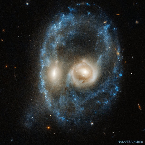 Галактики расположены в 700 миллионах световых лет от Земли. Они окружены интенсивным кольцом звездообразования.