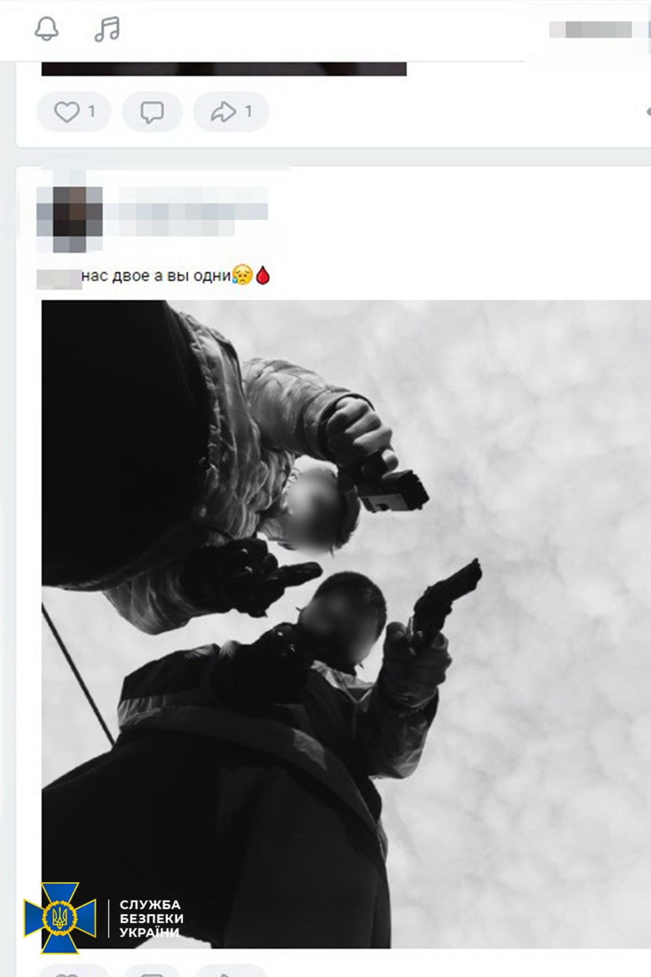 В СБУ сообщили, что информацию о подготовке к теракту они распространили через запрещенную в Украине соцсеть "ВКонтакте". Они публиковали сообщения с фото- и видеоматериалами о планировании массового расстрела одногруппников, а также призывали к этому присоединиться других.