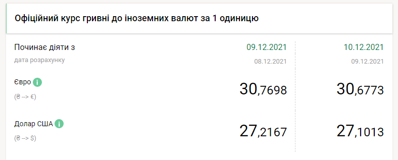 Национальный банк Украины на пятницу, 10 декабря, укрепил курс гривны на 11,5 копеек по отношению к доллару и на 9 копеек к евро, передает FaceNews.ua. Об этом свидетельствуют данные на сайте НБУ.