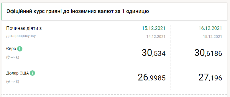 Национальный банк Украины на четверг, 16 декабря, понизил курс гривны почти на 20 копеек по отношению к доллару и более чем на 8 копеек к евро, передает FaceNews.ua. Об этом свидетельствуют данные на сайте НБУ.