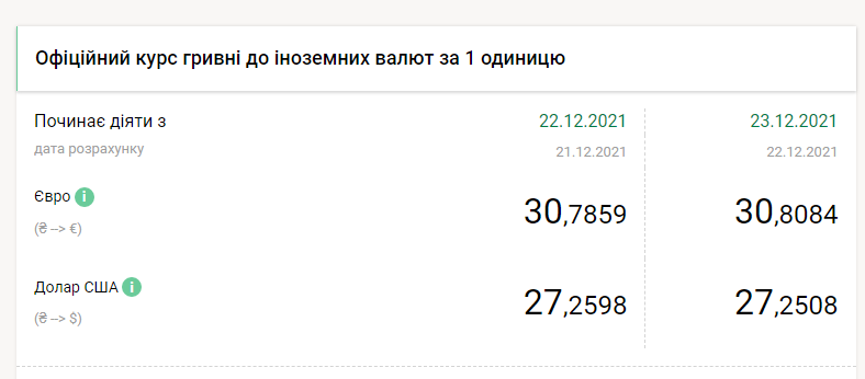 Национальный банк Украины на четверг, 23 декабря, укрепил курс гривны по отношению к доллару на 1 копейку, но понизил на 2 копейки к евро, передает FaceNews.ua. Об этом свидетельствуют данные на сайте НБУ в среду, 22 декабря.