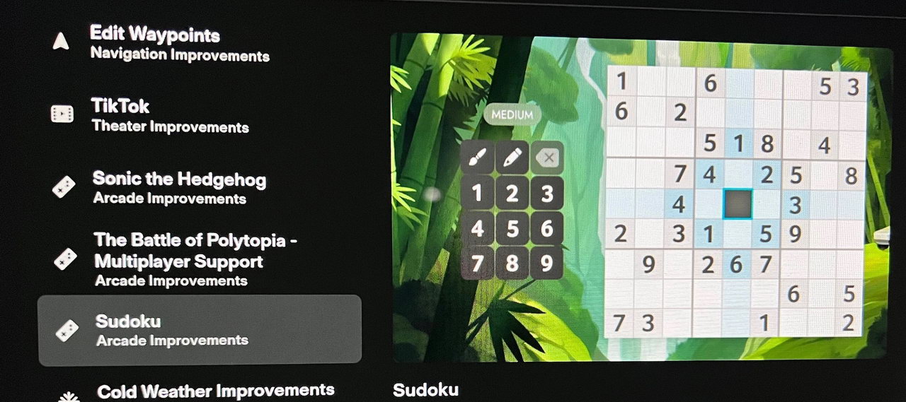 Кроме того, в праздничном обновлении этого года автопроизводитель добавил в раздел видеоигр популярную аркаду Sonic the Hedgehog и логическую игру Sudoku.