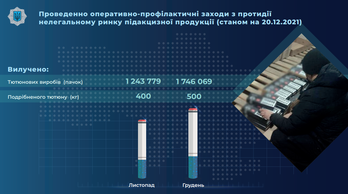По состоянию на 22 декабря Национальная полиция составила 6915 административных протоколов и открыла 178 уголовных производств за распространение безакцизных товаров.