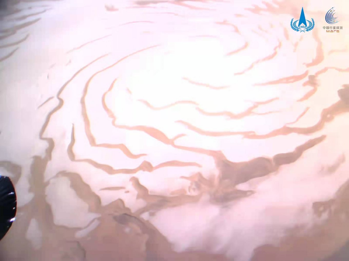 На кадрах можно увидеть орбитальный аппарат "Тяньвэнь-1", поверхность Красной планеты и марсоход "Чжуронг", который фотографирует Марс.