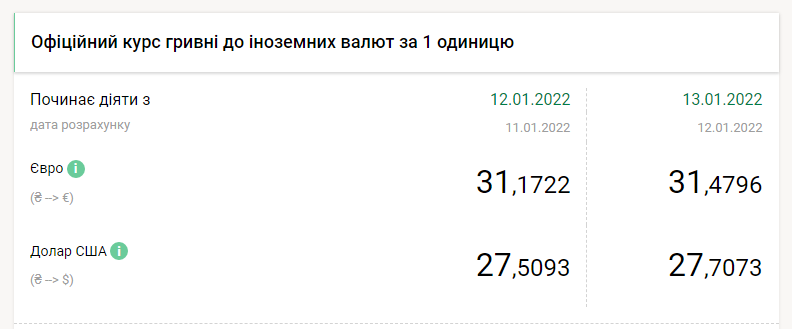 Национальный банк Украины на четверг, 13 января, понизил курс гривны почти на 20 копеек по отношению к доллару и более чем на 30 копеек к евро, передает FaceNews.ua. Об этом свидетельствуют данные на сайте НБУ.